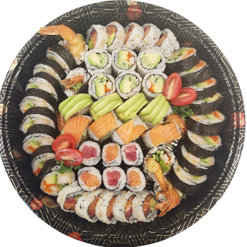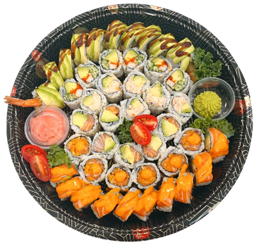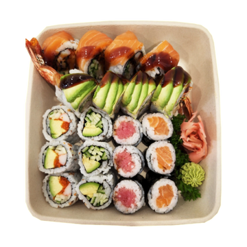 Rolls - Dynamite (20pcs), Salmon & Tuna Crunch (10pcs), Green Dragon (4pcs), Salmon Dragon (4pcs), California (3pcs), Cucumber & Avocado (3pcs), Salmon (3pcs), Tuna (3pcs)