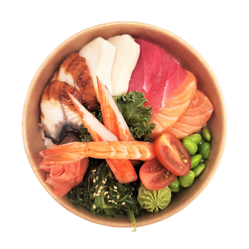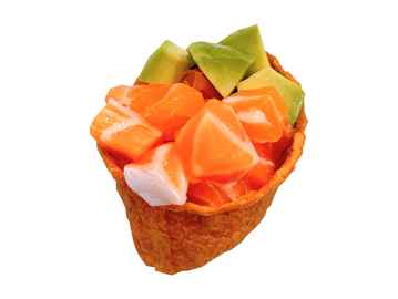 Salmon, avocado, tuna, tempura bits and mayo sauce