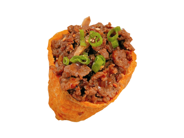 Inari sushi is made of sushi rice that is stuffed inside seasoned deep-fried tofu pouch, which is flavorful on its own.